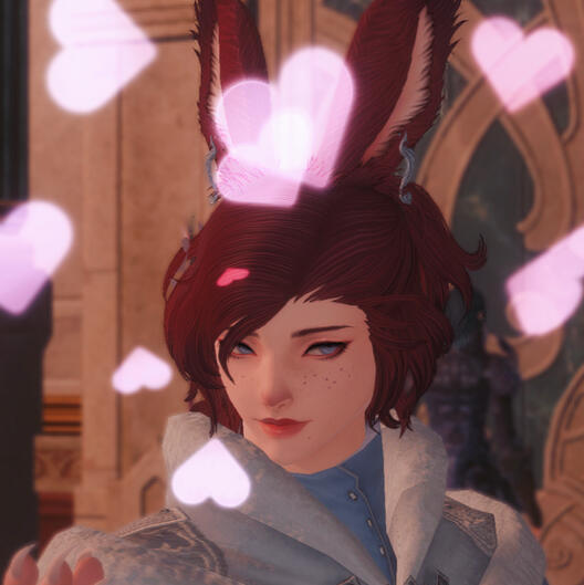 - he is a mixed race, a moon miqo'te and veena viera, and shares both qualities and traits with both! his ears are shorter than the average viera and has the tell-tale nose, yet has the eyes and tail of a miqo'te, including dull fangs